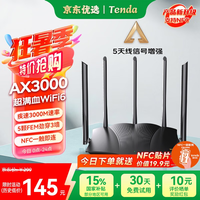腾达AX12 Pro双频3000M家用千兆无线路由器WiFi 6,黑色单个装,是一款专为追求性能体验的家庭用户设计的高品质路由器。它双频均支持Wi-Fi 6(802.11ax)技术,并发速率高达2976Mbps (5GHz:2402Mbps,2.4GHz:574Mbps)。搭载12nm制程的双核1.3GHz CPU,保障网络稳定流畅。全新升级高增益五天线,5GHz频段3发3收,隔墙也能高速上网,消灭侧面信号盲区。还搭载5颗内置高功率FEM,Wi-Fi穿墙能力更强、传输距离更远。支持迅展Mesh组网,解决超大户型Wi-Fi覆盖难题。采用OFDMA+MU-MIMO技术,满足更多设备同时上网,提高传输效率、降低延时。拥有4个千兆网口,榨干运营商带宽。此外,提供智能故障诊断、家长控制、访客网络等实用功能,支持远程打印功能(购机送2个月权益,后续预计需付费使用),还支持APP控制。