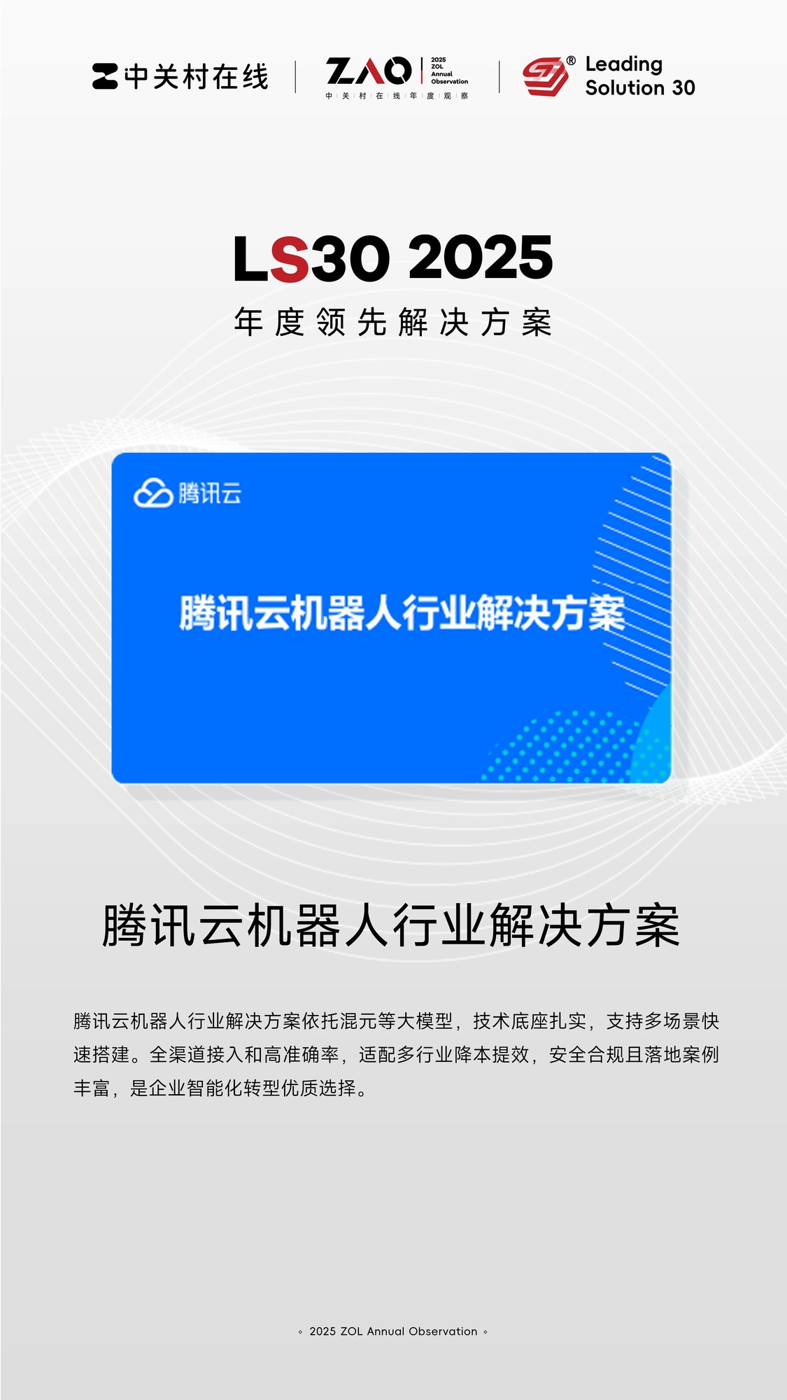 ZAO 2025中关村在线年度观察推选年度领先解决方案Leading Solution 30(以下简称LS30),为行业用户提供更好的选择,助力行业优质解决方案与技术方案。