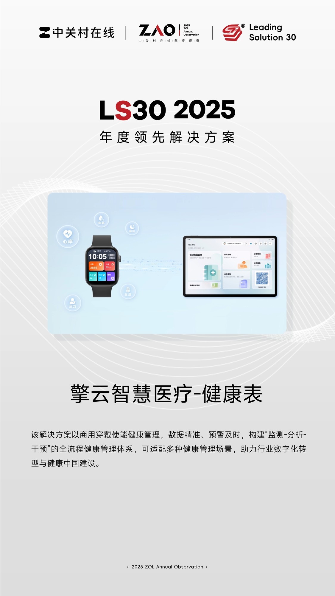 本文属于原创文章,如若转载,请注明来源:2025 LS30 | 擎云智慧医疗-健康表https://biz.zol.com.cn/1097/10974387.html